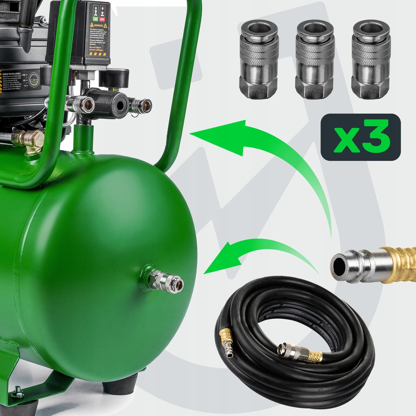 Kompresor został wyposażony w trzy zawory wyjściowe, co umożliwia jednoczesne podłączenie dwóch narzędzi pneumatycznych Dzięki temu użytkownik może pracować z większą elastycznością, na przykład malować i pompować opony jednocześnie, bez konieczności przepinania węży To praktyczne rozwiązanie zwiększa wydajność pracy i oszczędza czas!