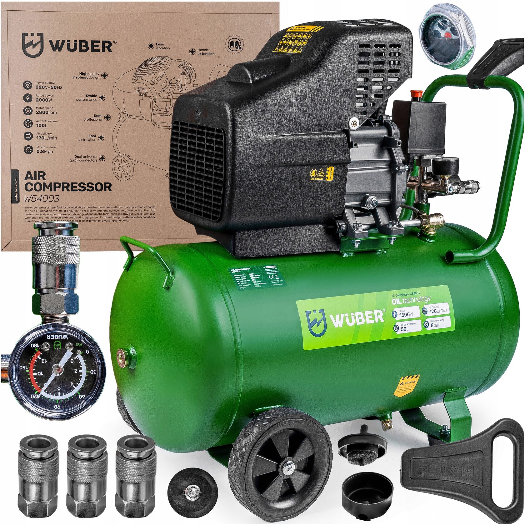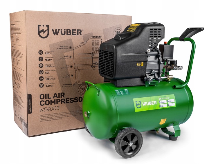 Marka Wuber Kod producenta W54003 KOMPRESOR OLEJOWY SPRĘŻARKA WUBER Typ kompresor olejowy Moc silnika 2 KM Moc 1.5 kW Wydajność efektywna 120 l/min Ciśnienie maksymalne 8 bar Pojemność zbiornika 50 l Waga urządzenia 26.5 kg Układ zbiornika poziomy Zasilanie sieciowe Napięcie zasilania 220 V EAN (GTIN) 5905873303119 Model W54003 KOMPRESOR OLEJOWY SPRĘŻARKA POWIETRZA WUBER