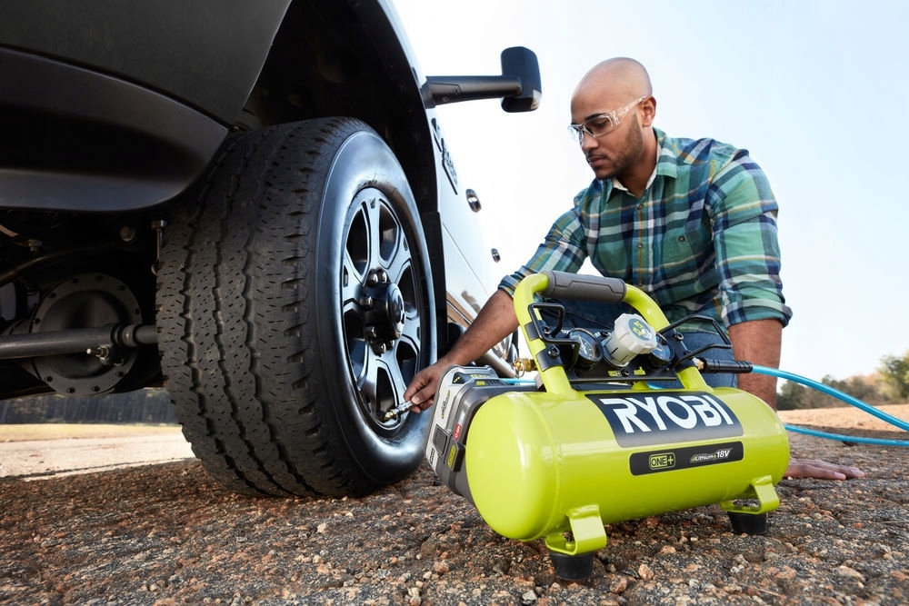 Ryobi R18AC-0 to bezolejowy kompresor akumulatorowy z systemu ONE+, dzięki któremu szybko napompujesz opony, zasilisz gwoździarkę czy przedmuchasz narzędzia pneumatyczne – gdziekolwiek jesteś, bez przedłużaczy i gniazdek.