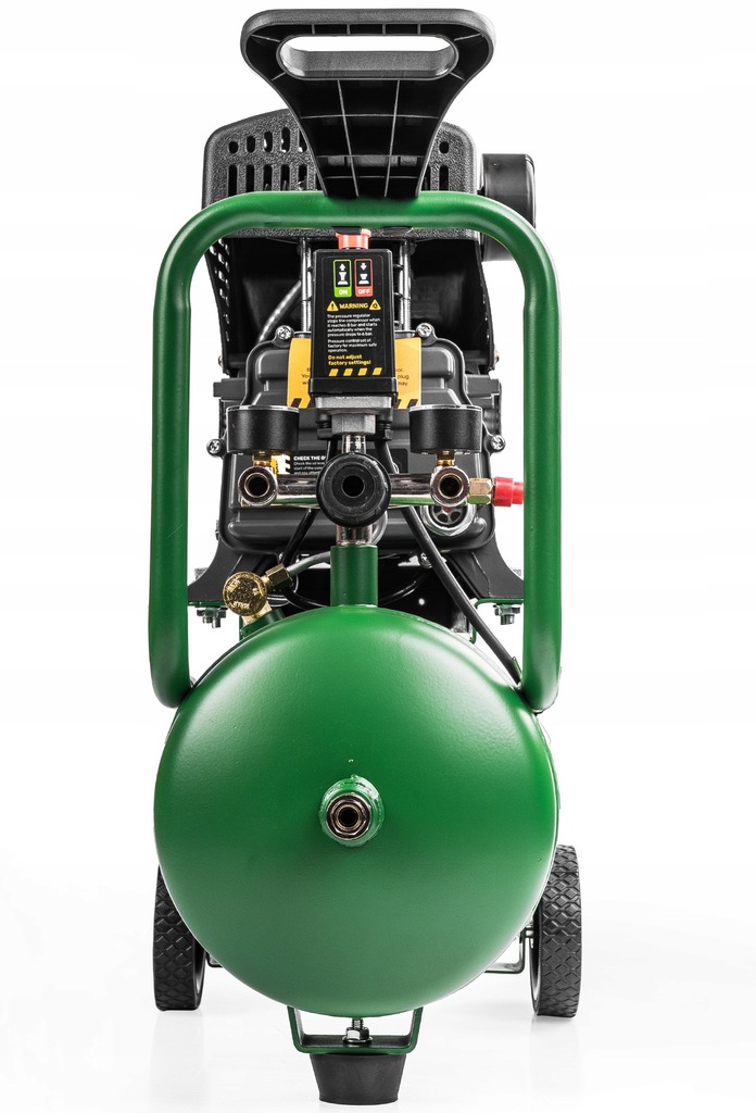 Kompresor wykonano z wysokiej jakości materiałów, co gwarantuje jego trwałość i niezawodność. Zbiornik o pojemności 24 litrów został wykonany z grubej, odpornej na korozję stali, co zapewnia długowieczność nawet w trudnych warunkach. Żeliwny cylinder o średnicy 42 mm to rzadkość w tej klasie urządzeń, ich precyzyjne wykonanie minimalizuje tarcie, redukuje zużycie i zapewnia stabilną pracę przy ciśnieniu roboczym 8 BAR.