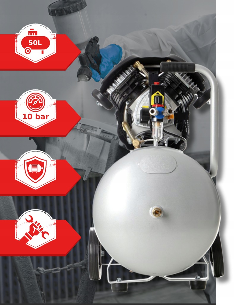 Potrzebujesz sprzętu, który podoła każdemu zadaniu? Ten kompresor dostarcza aż 530 L/min i osiąga ciśnienie maksymalne aż do 10 bar co czyni go idealnym narzędziem do intensywnej pracy w garażu, warsztacie, a nawet w domu. *Fabrycznie ciśnie kompresora 8bar z możliwością samodzielnej regulacji do ciśnienia 10 bar