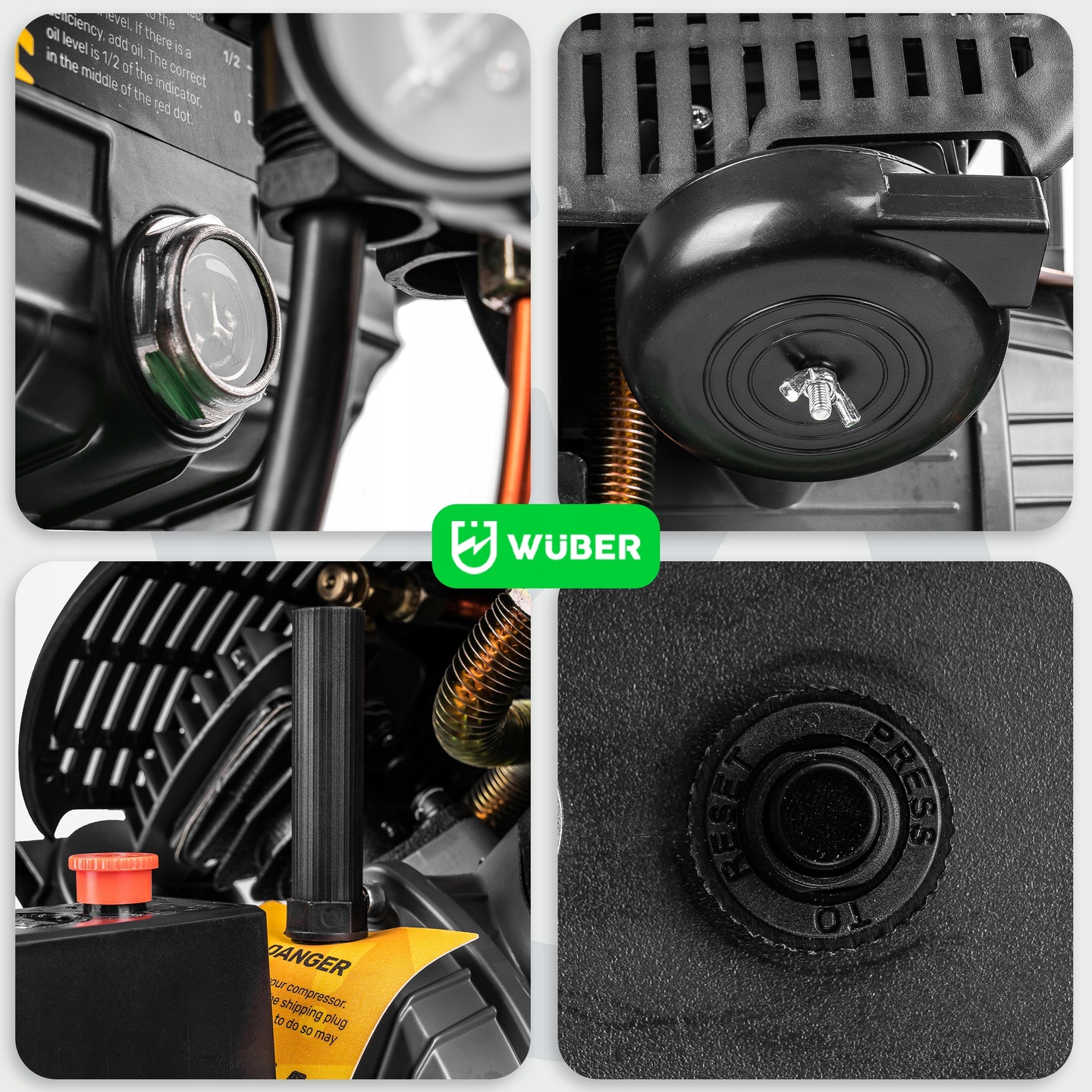 ✔️ Dodatkowe otwory wentylacyjne usprawniają cyrkulację powietrza, podnosząc wydajność kompresora